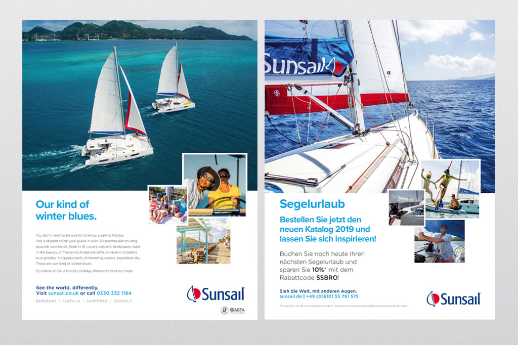 Producing press adverts, direct mail, social media assets & exhibition stands for the Sunsail sailing holiday brand.